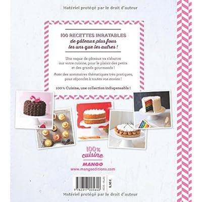 100 recettes inratables de gâteaux plus fous les uns que les autres ! Une vague de gâteaux va s'abattre sur votre cuisine, pour le plaisir des petits et des grands gourmands ! Avec des sommaires thématiques très pratiques, pour répondre à toutes vos envies !100% Cuisine, une collection indispensable !