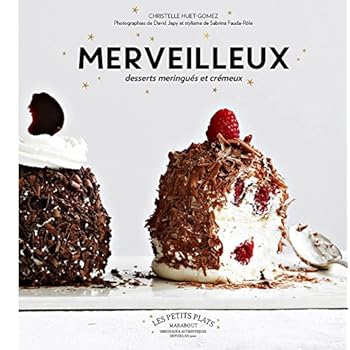 35 recettes de merveilleux.Un merveilleux est une meringue croquante à l'extérieur et fondante à l'intérieur, recouverte de crème fouettée, et de copeaux de chocolat.La recette de la meringue, la chantilly et la technique de copeaux, la démonstration du montage.Extrait du sommaire : les chocolatés, gourmands (vanille, pain d'épices, praliné), les fruités (noix de coco, framboises, fraises, pommes), les classiques revisités (forêt noire, tarte citron). Les gâteaux merveilleux à partager : fraises amandes, pralines roses et chocolat blanc. Photographies : David Japy.